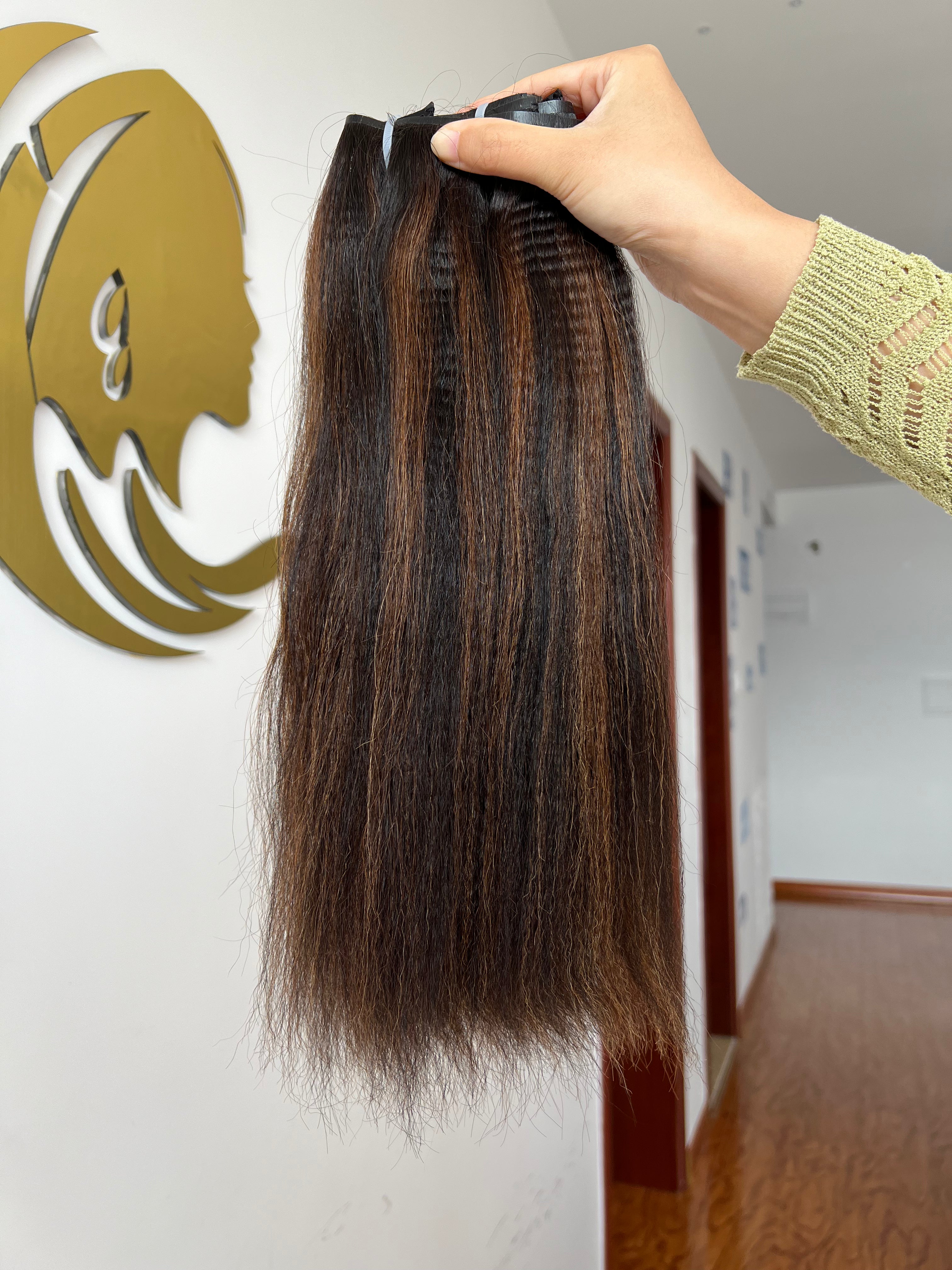 13A Virgin Hair Seamless Clip-ins Yaki Straight #4/27